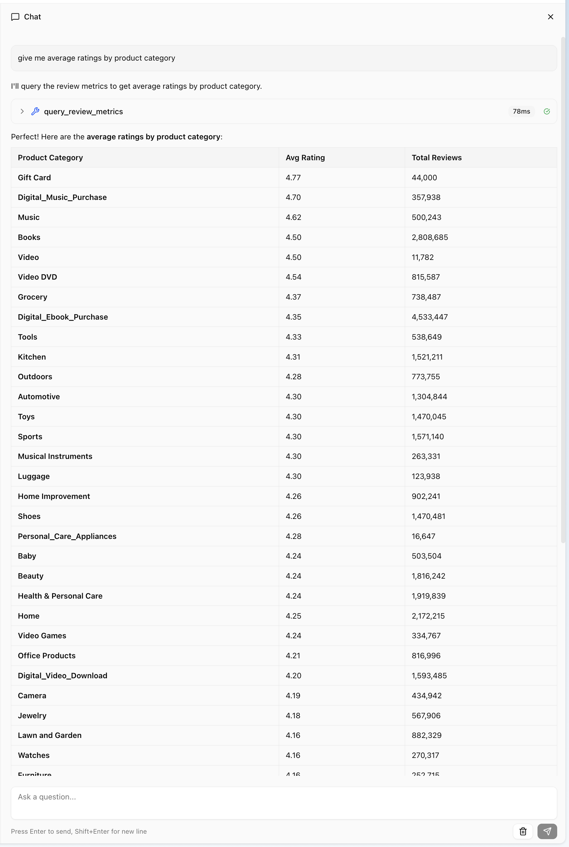 Verify that your chat can query your data through the MCP tools.