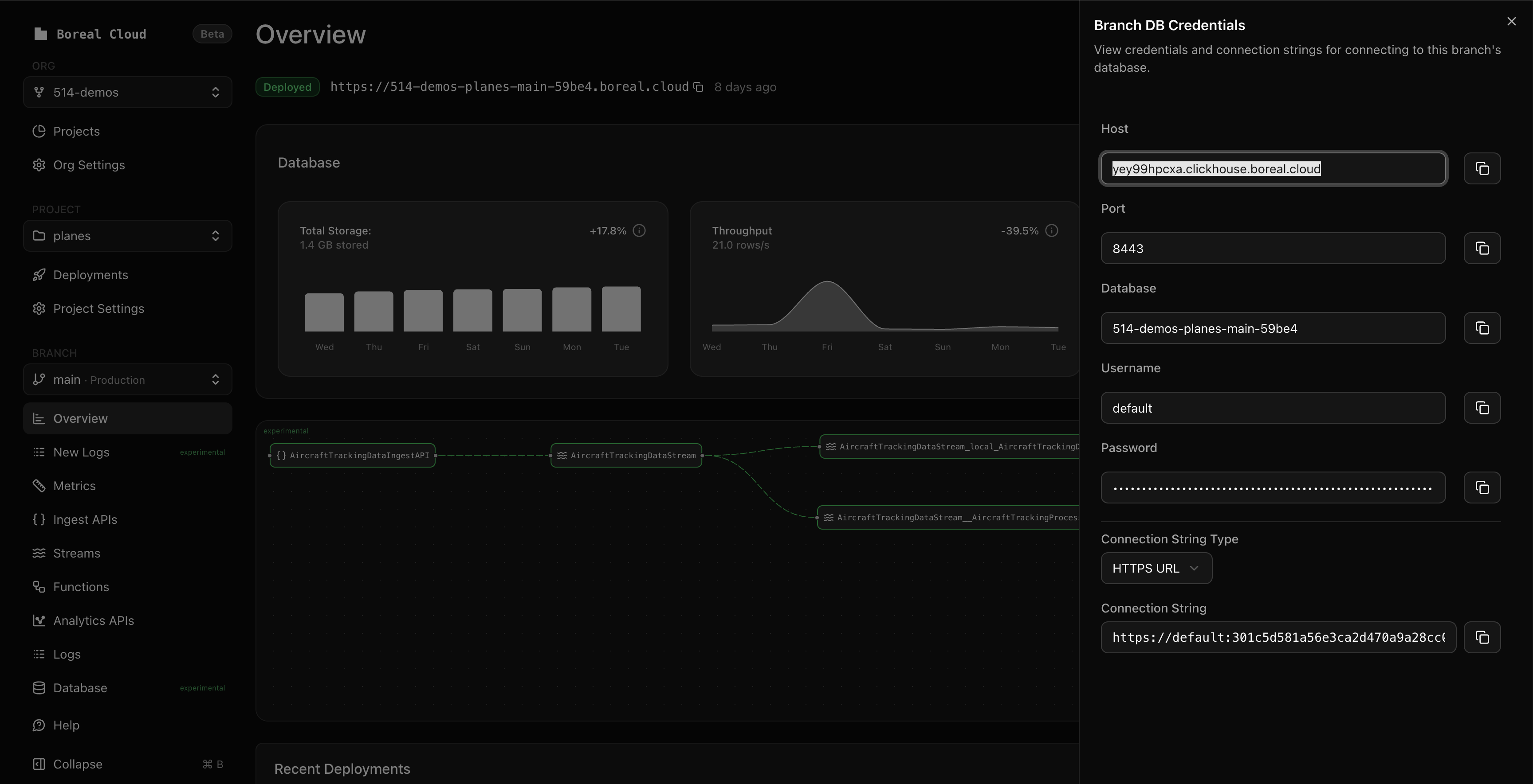 When you open a feature branch and PR later in this guide, Fiveonefour can automatically provision a preview environment and generate a migration plan for the code changes in your branch. This ensures your code changes are safe and you can apply them to your main ClickHouse database with confidence.